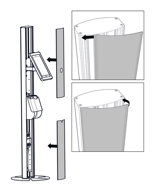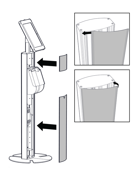 Custom-printed artwork on interchangeable polypropylene graphic panels for Sine T10 & T15 Kiosk.